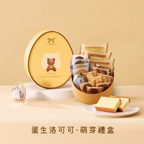 獨特蛋型造型禮盒,禮盒內有一顆象徵初生喜悅的玻璃蛋,內容集結多款禮坊人氣法式糕點、餅乾,讓美味一次呈現!